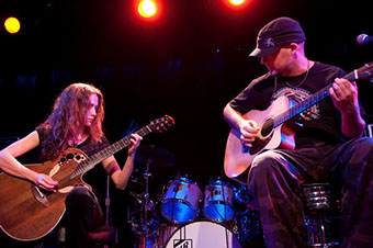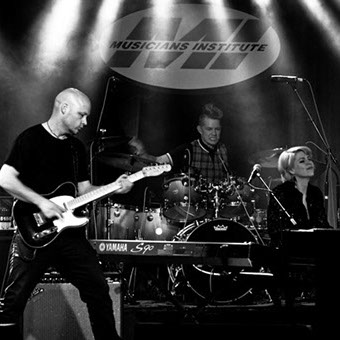 Jude Gold performing with Lisa Harriton (Smashing Pumpkins) on keys and Adrian Young (No Doubt) on drums at the Jam For Japan benefit concert in March, 2012, in Hollywood. Photo by Jim Felix.