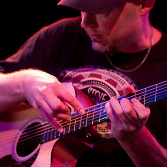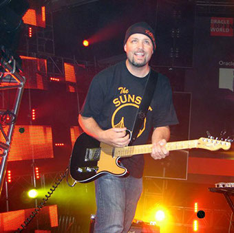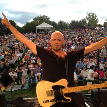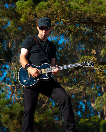 Performing with a Van Halen-ized MJ Guitar in Redwood City, CA. [Photo: Bryan Turner]