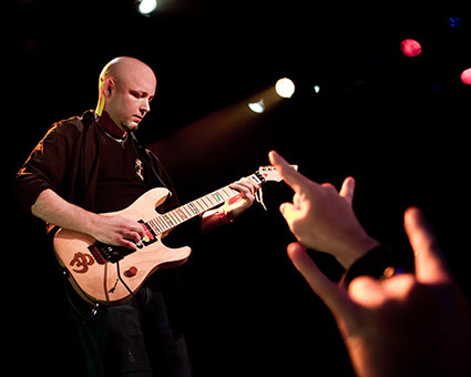 Performing at Jason Becker's Not Dead Yet festival, wielding Becker's original ’80s custom Peavey guitar. Other artists included Joe Satriani, Steve Lukather, Greg Howe, and Richie Kotzen. [Photo: Bryan Turner]