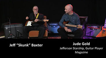On May 7, 2013, Jude had the honor of co-leading a live "webinar" for Roland/BOSS with legendary guitarist Jeff "Skunk" Baxter. Perhaps best known for his work as a member of the Doobie Brothers and Steely Dan, Baxter has also worked with superstars in every genre of music, including Bryan Adams, Eric Clapton, Gene Clark, Sheryl Crow, Freddie Hubbard, Joni Mitchell, Ricky Nelson, Dolly Parton, Carly Simon, Ringo Starr, Gene Simmons, Rod Stewart, Barbra Streisand, the Beach Boys and Donna Summer—all of which further make Baxter a true "guitar player's guitar player." His side career as an aviation/defense consultant to the U.S. government is also quite fascinating. Bouncing between talking about and demo-ing cool BOSS guitar gear and just plain jamming/trading licks, Jude and "Skunk" were webcasted live on Guitar Center's website.